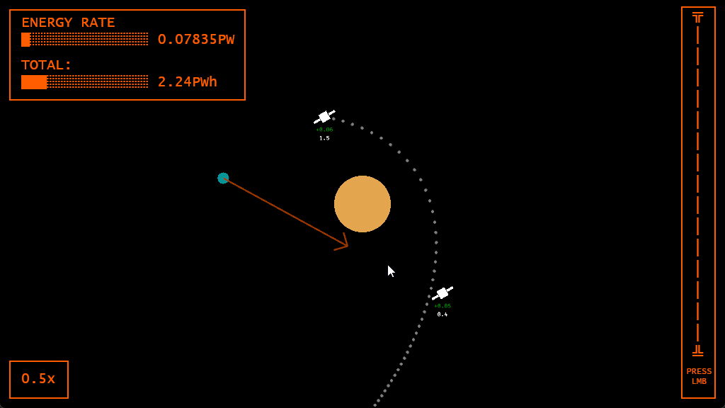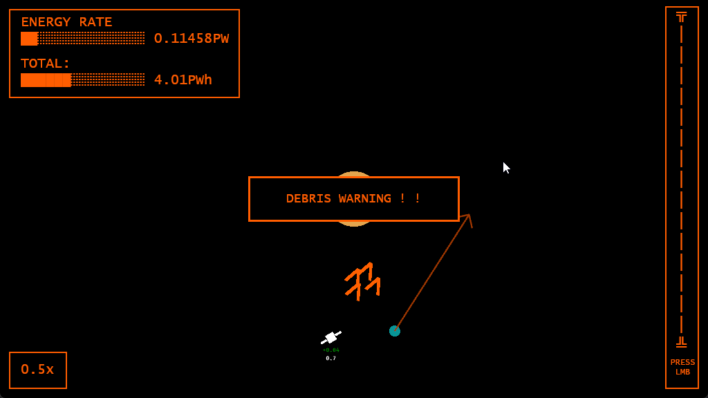 - Press Space to use fuel and slow down the collector to adjust the orbit.